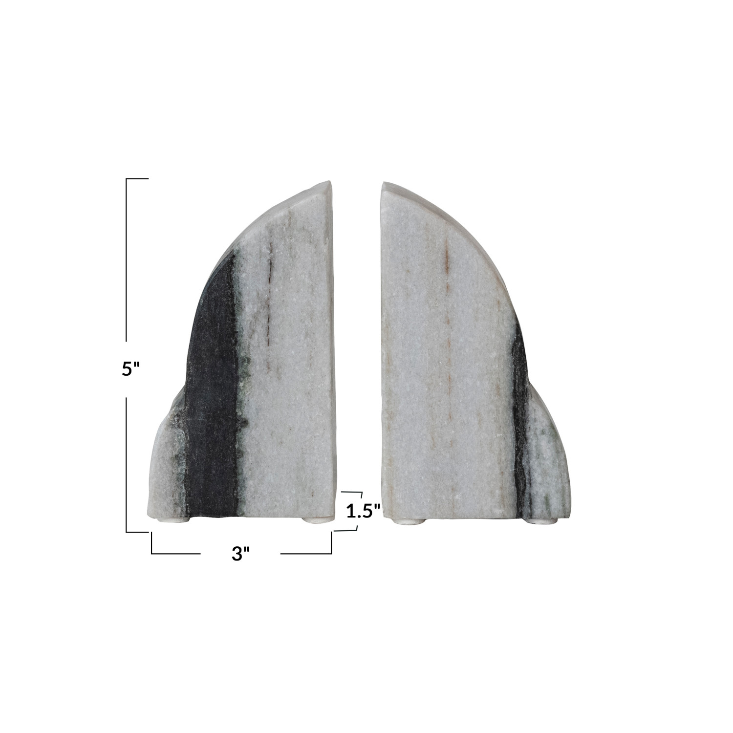 Catalog Name: 3"L x 1-1/2"W x 5"H Carved Marble Bookends, Black Melange, Set of 2 (Each One Will Vary)