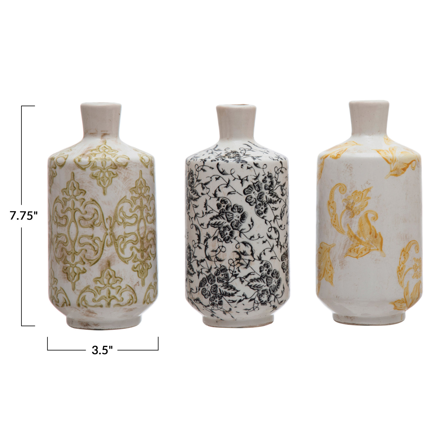 Catalog Name: 3-3/4" Round x 7-1/2"H Decorative Terra-cotta Vase w/ Transferware Pattern, Multi Color, 3 Styles