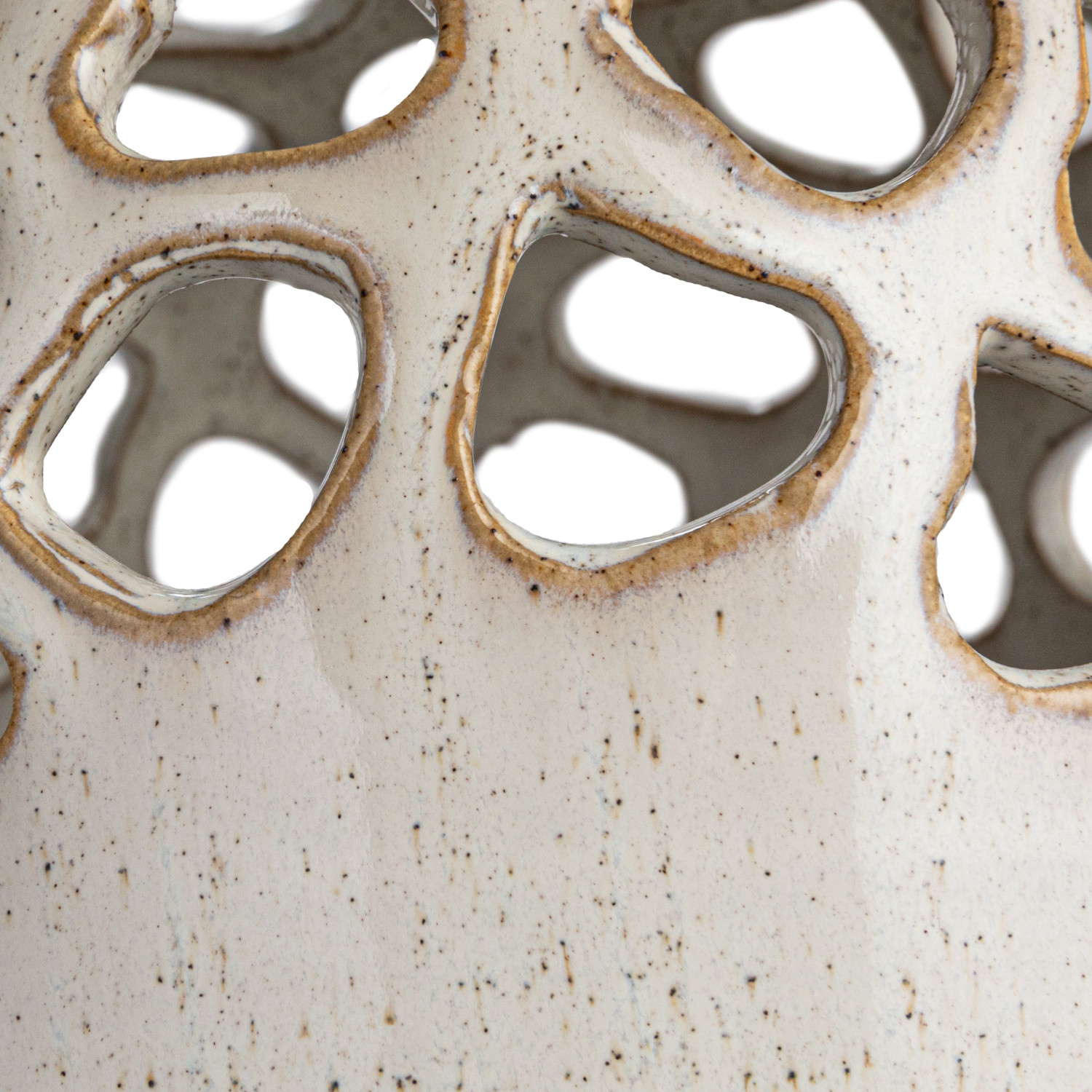 Catalog Name: 6-1/4" Round x 7-1/2"H Stoneware Vase w/ Cut-Outs, Reactive Glaze, Cream Color Speckled (Each One Will Vary)