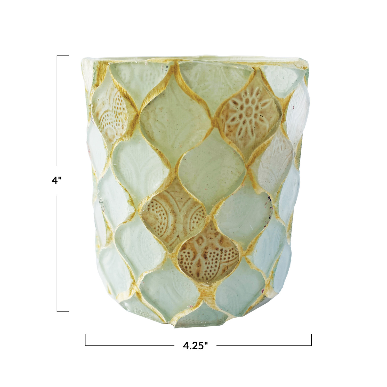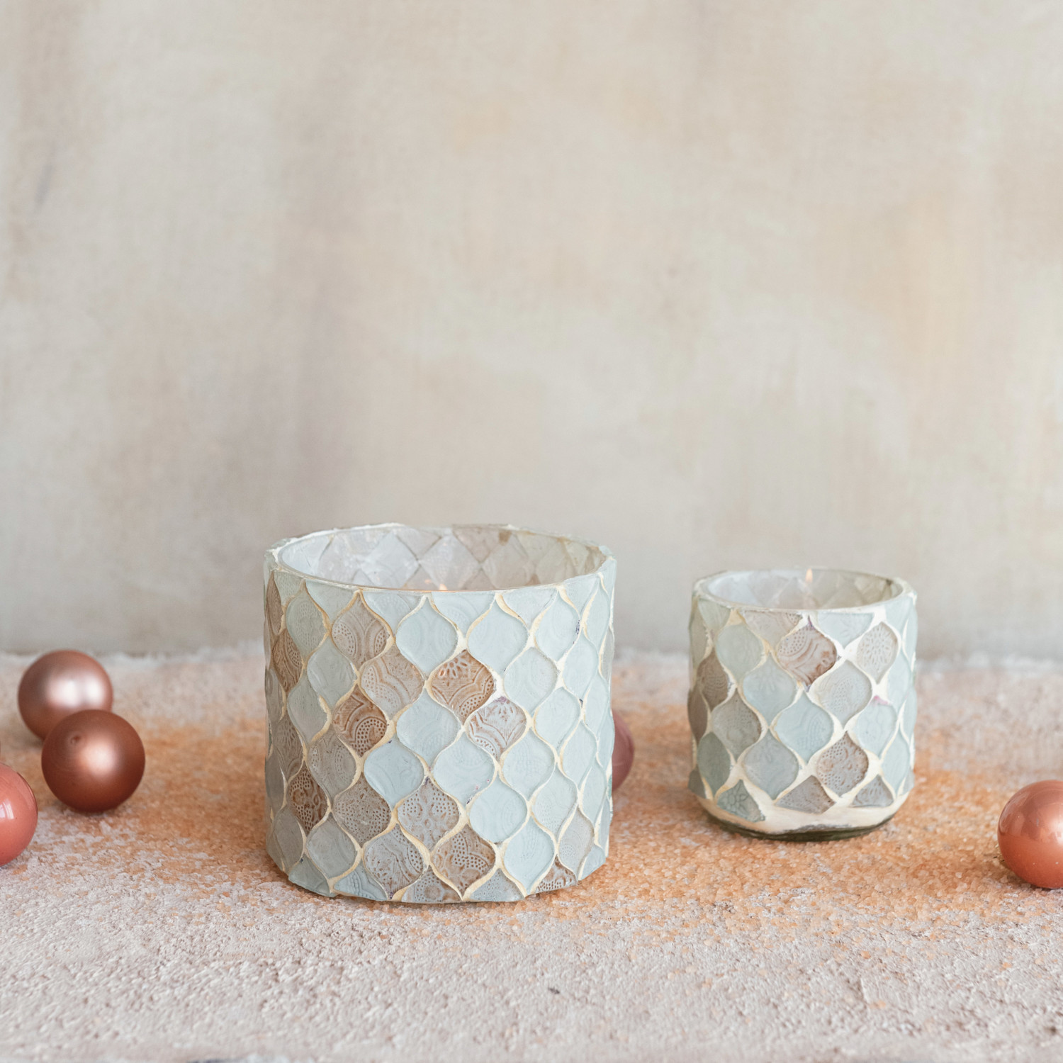 Recycled Glass Mosaic Votive Holder, Cream Color & Taupe