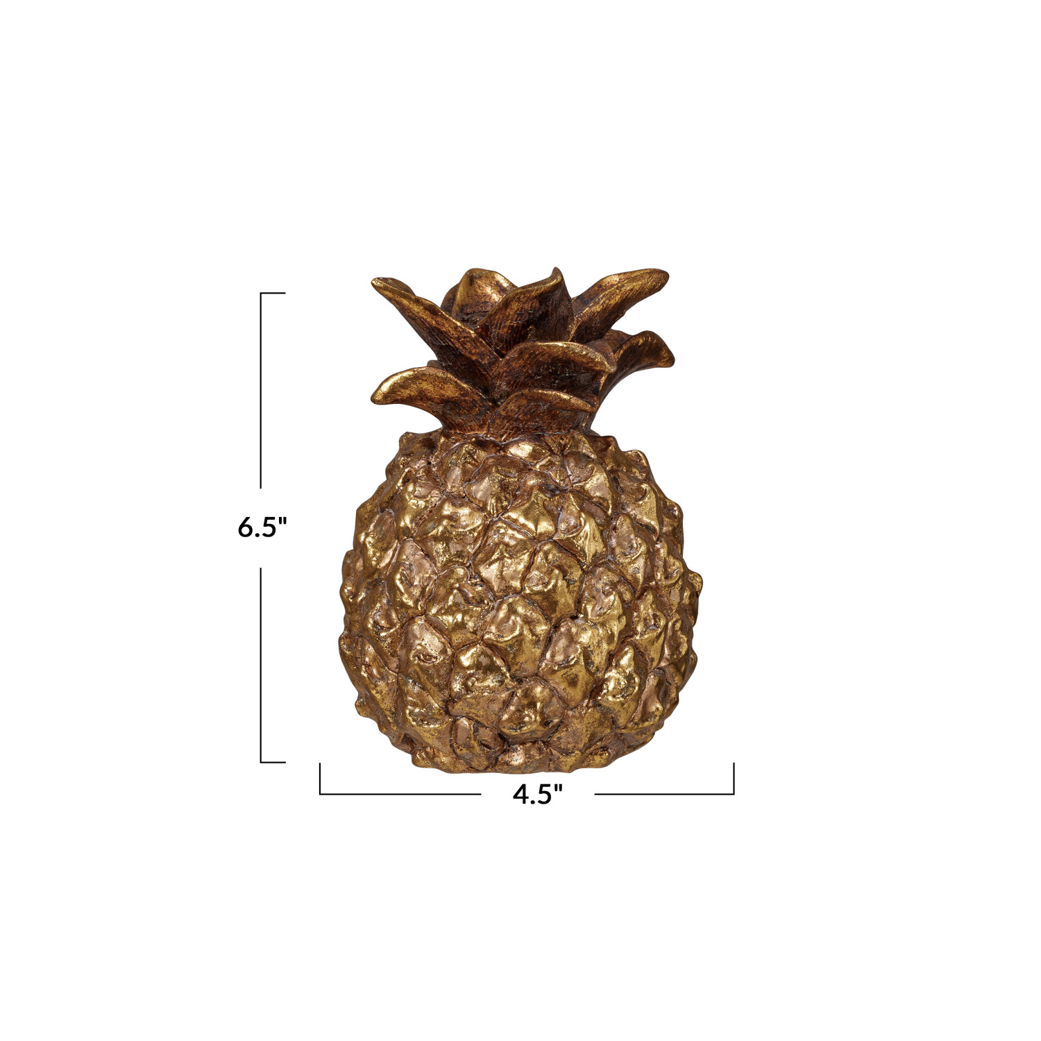 Catalog Name: 4-1/2"L x 4-1/4"W x 6-1/2"H Resin Pineapple Taper Holder, Antique Gold Finish