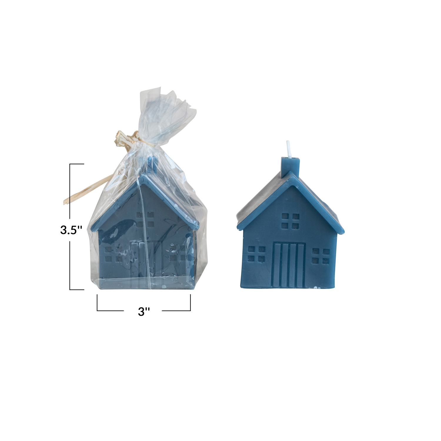 3" Square x 3-1/2"H Unscented House Shaped Candle, Blue (Approximate Burn Time 32 Hours)