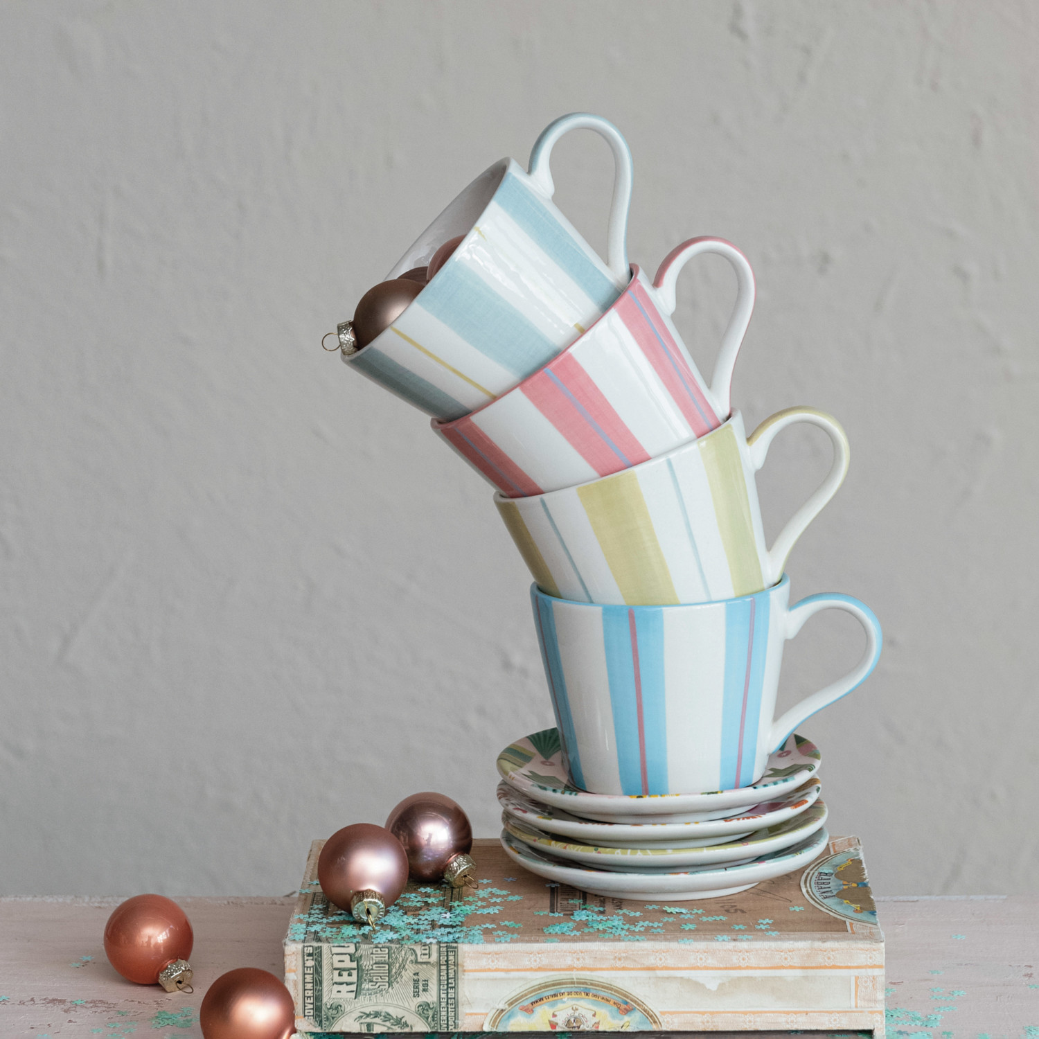 Catalog Name: 5" Round Stoneware Plate w/ Seasonal Pattern, Multi Color, 4 Styles ©
