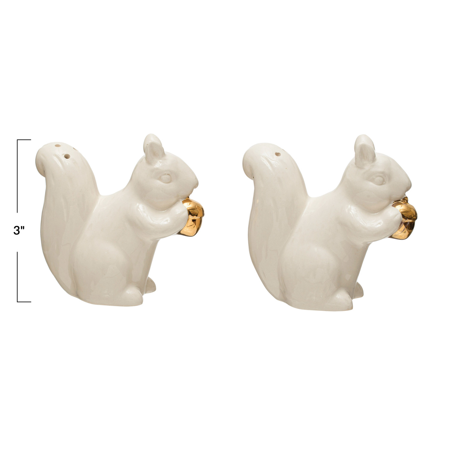 Stoneware Squirrel Salt & Pepper Shakers w/ Gold Electroplating, White, Set of 2