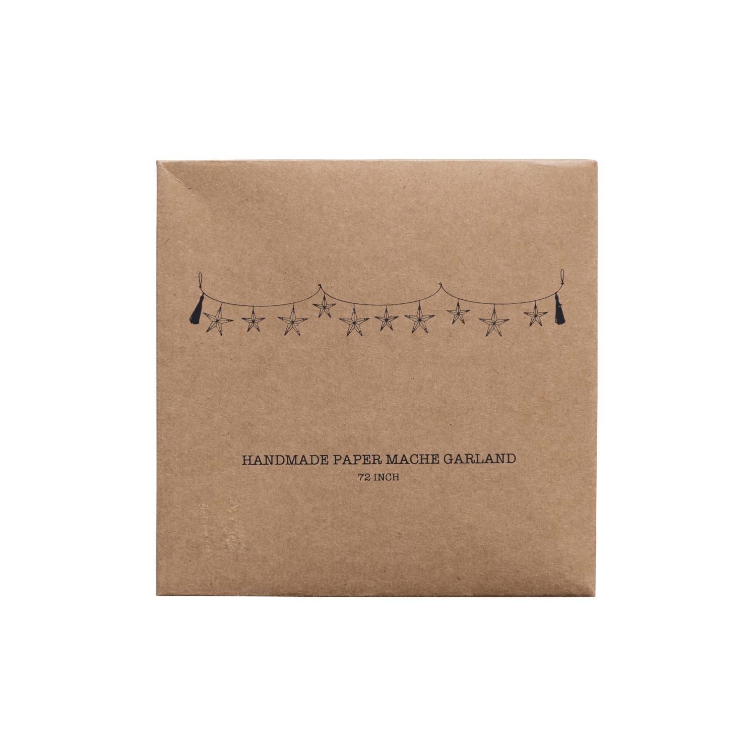 72"L Hand-Painted Recycled Paper Mache Star Garland w/ Gold Foil & Tassels in Kraft Box
