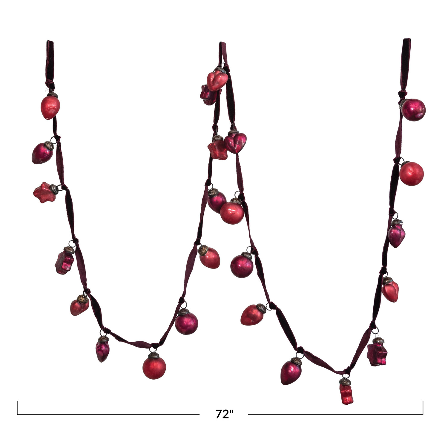 72"L Embossed Mercury Glass Ornament Garland on Velvet Ribbon, Burgundy