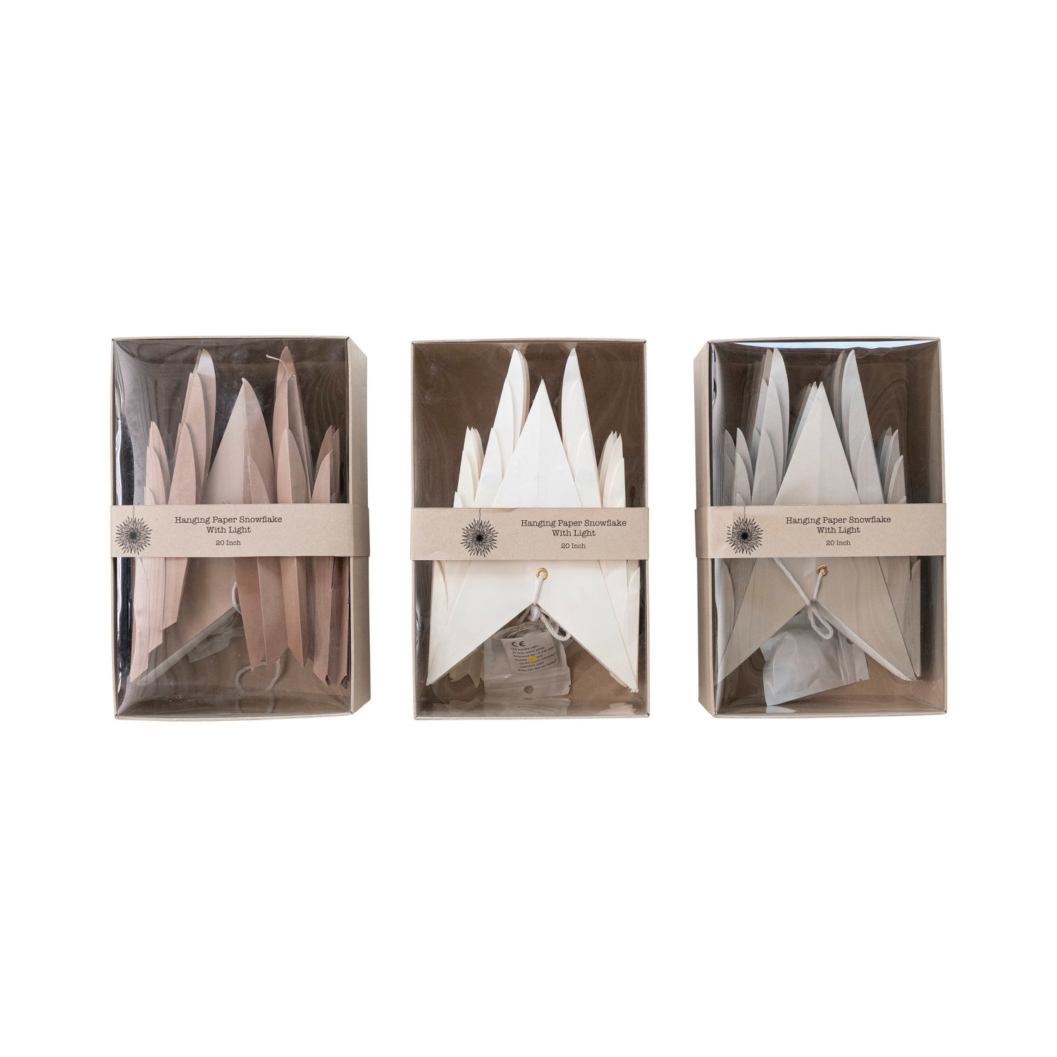 Recycled Paper Folding Snowflake Ornament w/ LED Light String, 3 Colors