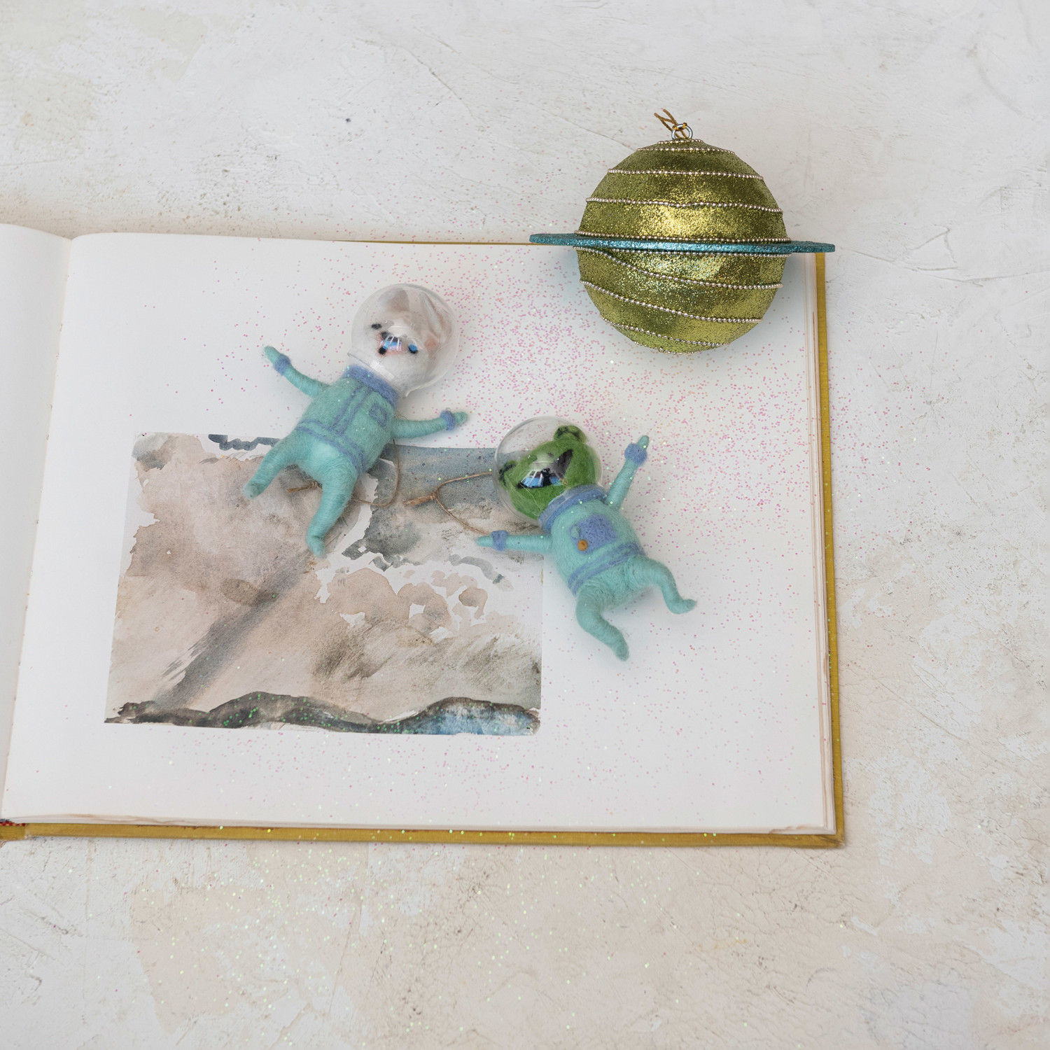 Handmade Wool Felt Frog/Rabbit in Spacesuit Ornament, 2 Styles