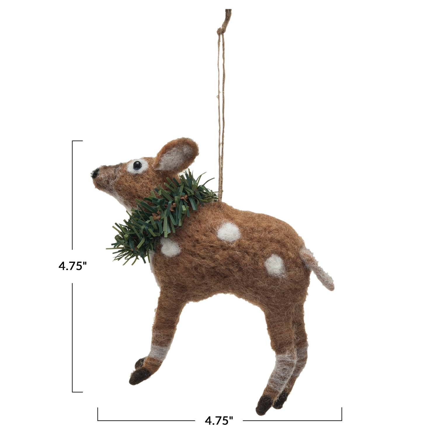 Catalog Name: 4-3/4"L x 1-3/4"W x 4-3/4"H Handmade Wool Felt Deer w/ Wreath Ornament, Multi Color
