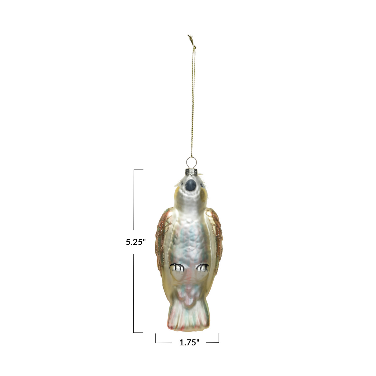 This glass bird ornament with feathers and glitter accents has a yellow and gold finish that reflects the warmth of the festive season. It adds a touch of natural elegance to any holiday-themed activity. The ornament measures 2.0 inches in length, 1.75 inches in width, and 5.25 inches in height, poised to enchant as a highlight of any holiday decor. This is a perfect choice for anyone who loves whimsical and adorable holiday decor. A glass bird ornament, adorned with feathers and glitter, basking in a yellow and gold finish. An ornament that brings a warm, sunlit glow to any festive setting, inviting a sense of joy and serenity. Perfect for hanging amidst the boughs of a Christmas tree or as a standalone piece catching the morning light.