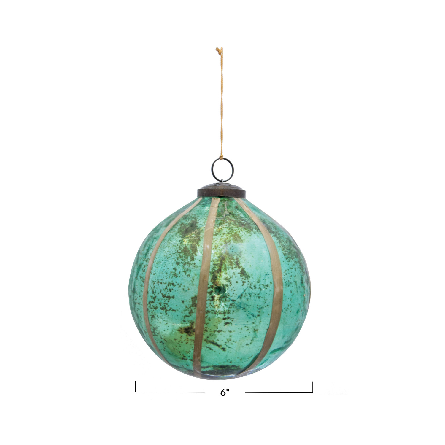 Catalog Name: 6" Round Recycled Glass Ball Ornament w/ Embedded Eucalyptus Leaves, Turquoise