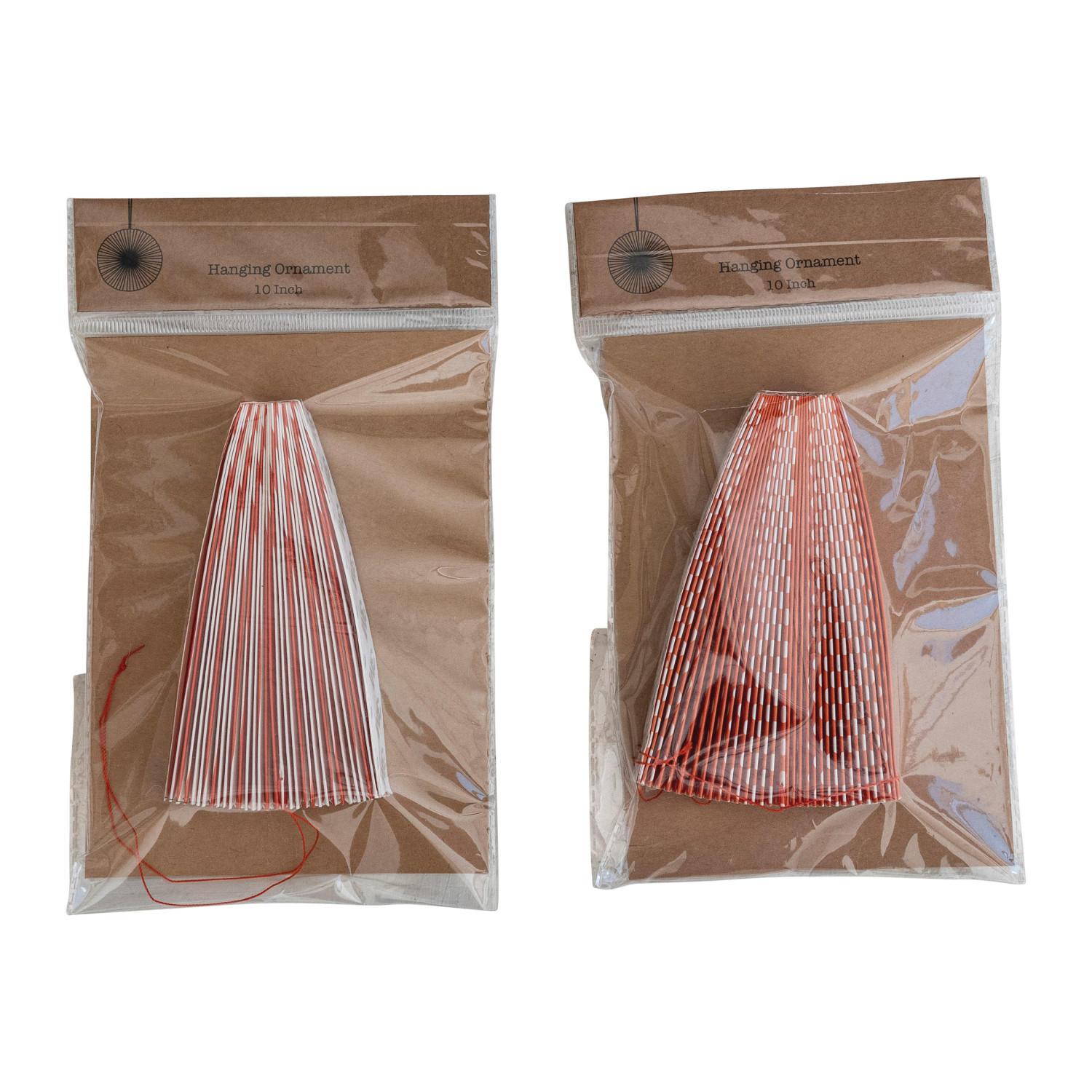 Catalog Name: 10" Round Paper Pinwheel Ornament w/ Dots/Stripes, Orange Color & White, 2 Styles