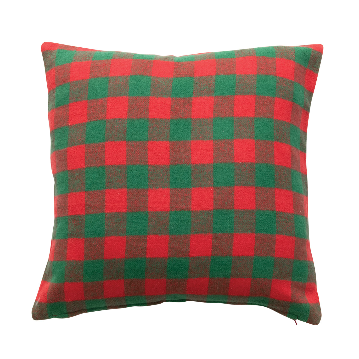 Catalog Name: 18" Square Cotton Flannel Pillow, Red and Green Buffalo Check