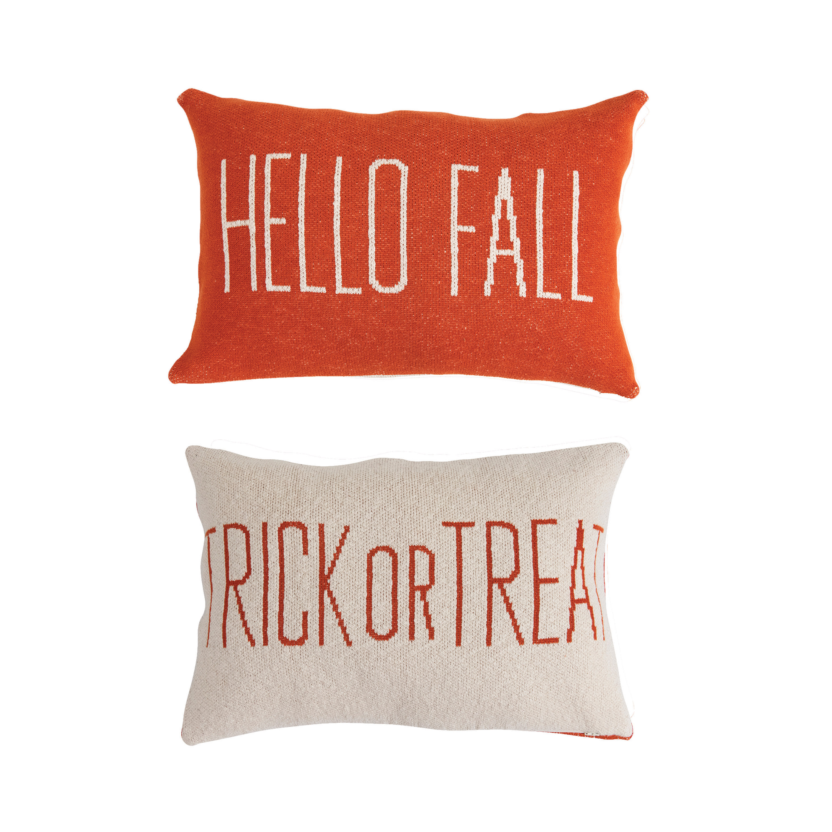 Catalog Name: 24"L x 16"H Two-Sided Cotton Knit Lumbar Pillow "Hello Fall/Trick Or Treat", Orange & Cream Color