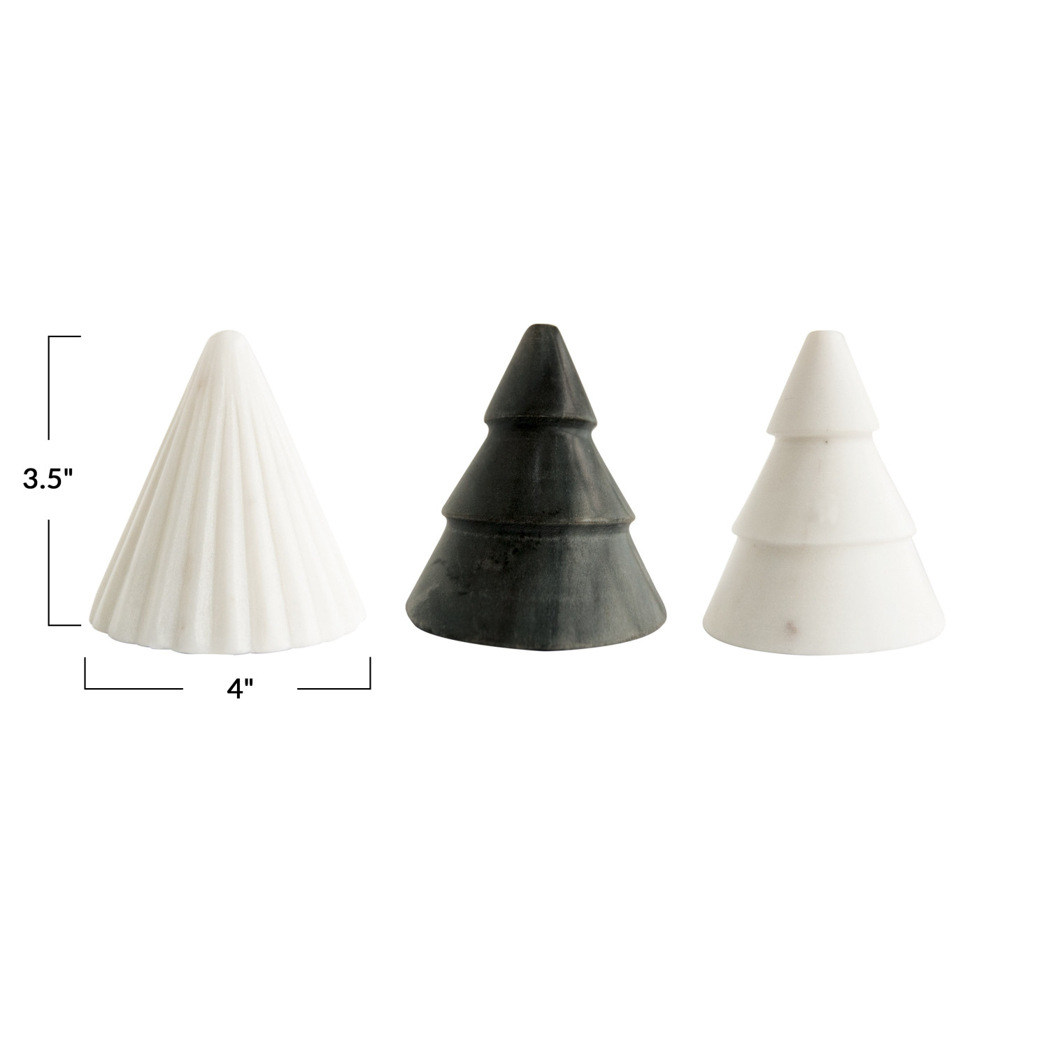 Catalog Name: 4" Round x 3-1/2"H, 3" Round x 3-1/2"H & 3" Round x 3"H Marble Trees, White & Grey, Set of 3