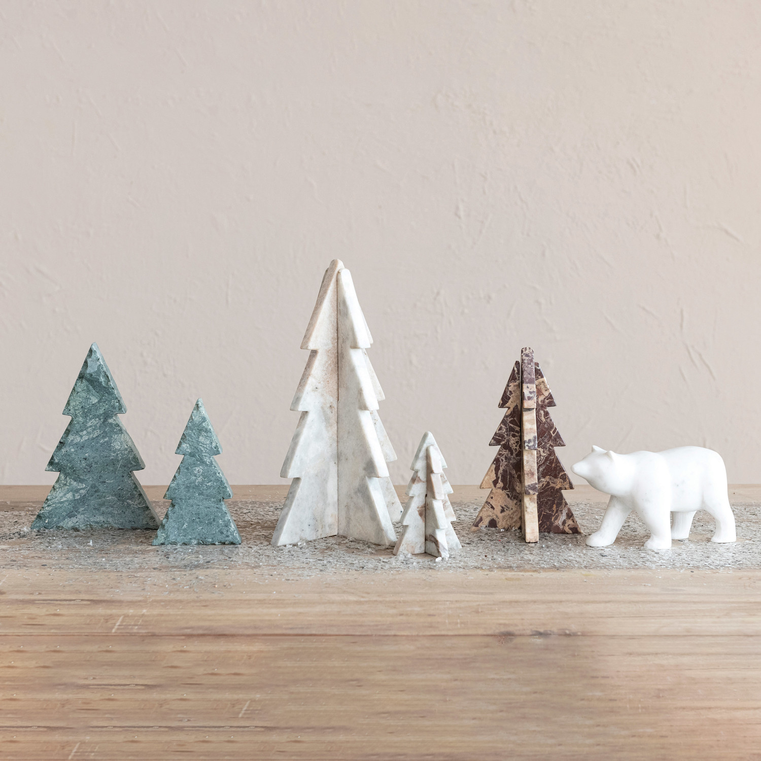 This green, standing marble tree is a lovely and unique way to decorate for the holidays. It features a marble tree that has a green color and a standing design, creating a stunning and eye-catching effect. The tree has a natural and elegant look that can suit any style and theme, from traditional to modern. The tree is ideal for displaying on a table, mantel, shelf, or window sill, where it can add a touch of charm and warmth to the space. The tree can also stand on its own or be paired with other trees or ornaments, making it a versatile and customizable option. The tree is made of marble that is durable, smooth, and easy to clean, making it a convenient and reusable option. It measures 5.5 inches in length, 2 inches in width, and 8 inches in height, making it a graceful and noticeable centerpiece. Elevate the holiday decor with this eye-catching Christmas tree, adding both style and a touch of whimsy. An organic and unique marble tree that has a green color and a standing design. A natural and elegant addition to any holiday decor, this tree brings a touch of sophistication and style to any room. Ideal for displaying on a table, mantel, shelf, or window sill, this tree can stand on its own or be paired with other trees or ornaments.