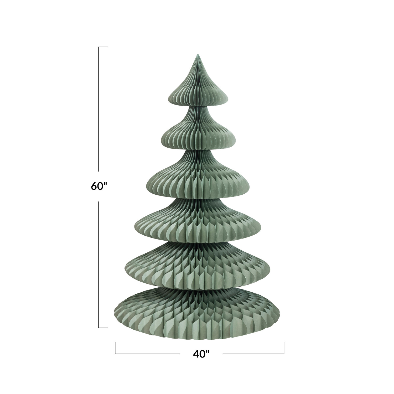 This mint paper honeycomb tree is a cute and cheerful way to decorate for the holidays. It features a simple design that pops up into a round shape with a pointed top, creating a three-dimensional effect. The tree has a bright and refreshing mint color that adds a touch of whimsy and joy to any festive theme. The tree is ideal for placing on a table, mantel, shelf, or window sill, where it can create a cozy and inviting atmosphere. The tree is also easy to fold and store, making it a convenient and reusable option. The tree is made of high-quality paper that is durable. It measures 40 inches in diameter and 60 inches in height, making it a charming and noticeable centerpiece. This paper honeycomb tree is a great choice for anyone who loves colorful and playful holiday decor. Elevate the holiday decor with this eye-catching Christmas tree, adding both style and a touch of whimsy. A lovely paper honeycomb tree that pops up into a round shape with a pointed top. A fresh and festive addition to any holiday decor, this mint tree brings a splash of color and fun to any room. Ideal for displaying on a table, mantel, shelf, or window sill, this tree can be easily folded and stored for next year.