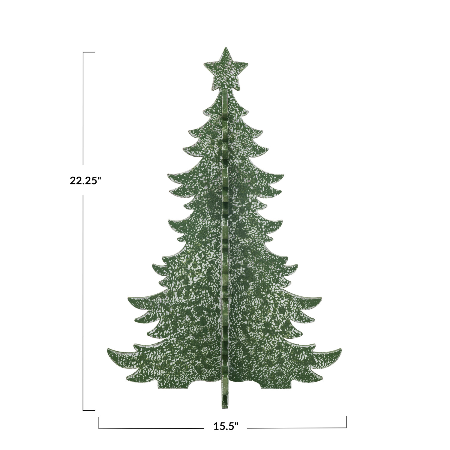 Catalog Name: 15-1/2" Round x 22-1/4"H MDF Interlocking Christmas Tree, Distressed Green