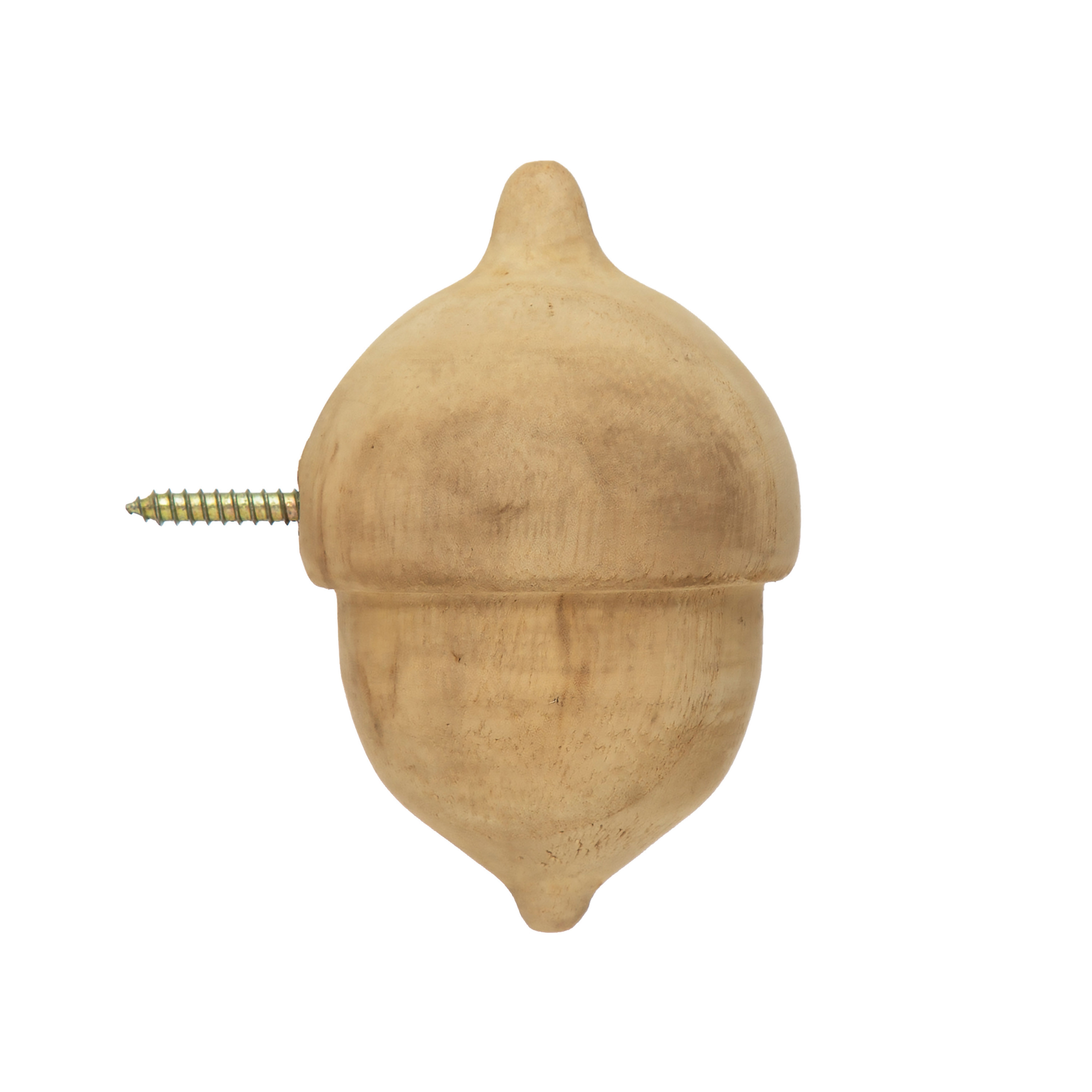 Paulownia wood acorn wall hook in natural finish. Add to a seasonal display for a dash of whimsical autumn charm.