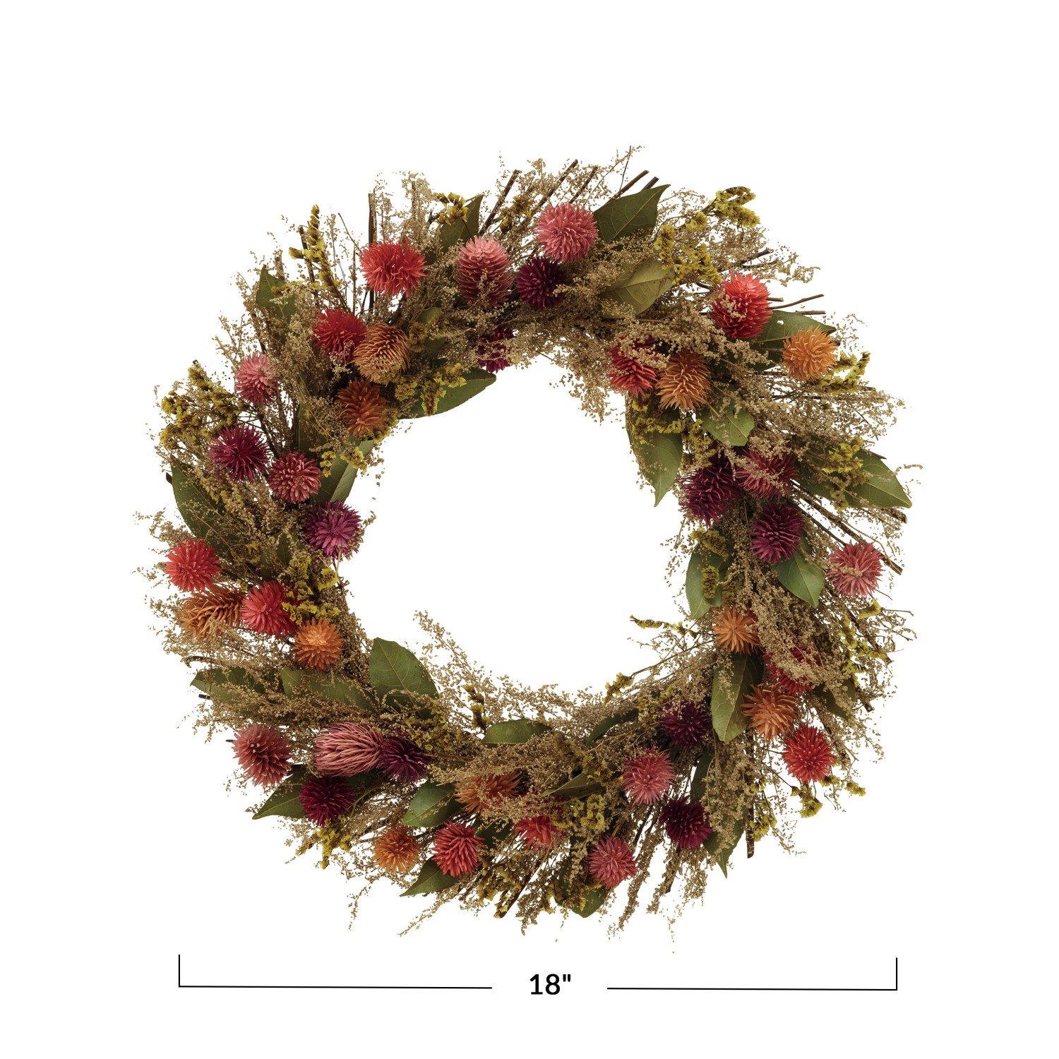Catalog Name: 18" Round Dried Natural Botanicals Wreath, Multi Color