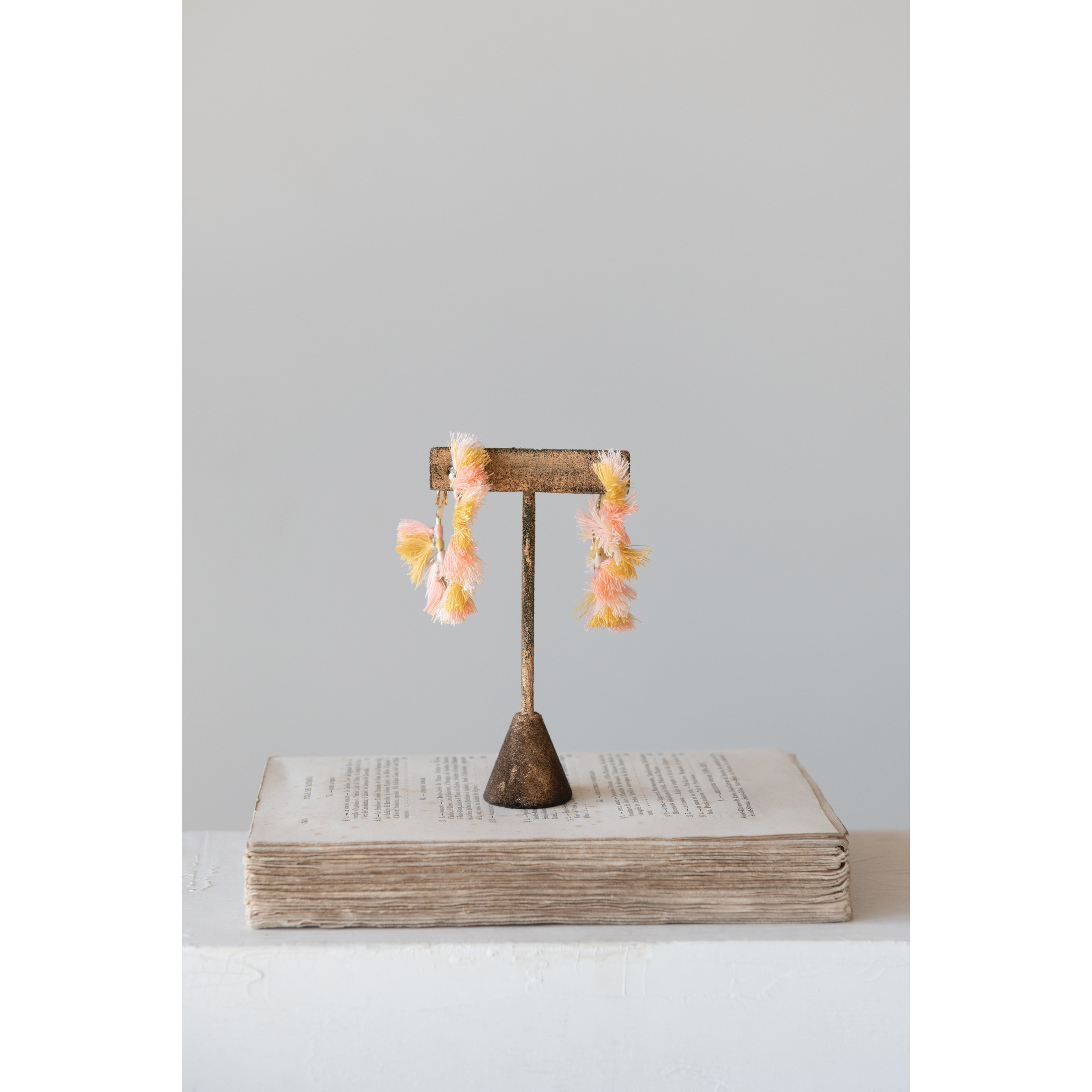 Catalog Name: 1-1/2"L Metal Corte Earrings w/ Cotton Tassels