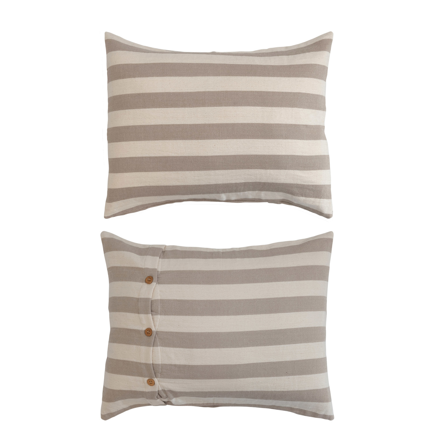 Catalog Name: 102"L x 90"W Cotton Double Cloth Bed Cover w/ Stripes & 2 Standard Shams w/ Wood Buttons, Queen, Cream & Tan Color, Set of 3 Tied w/ Cotton Tape