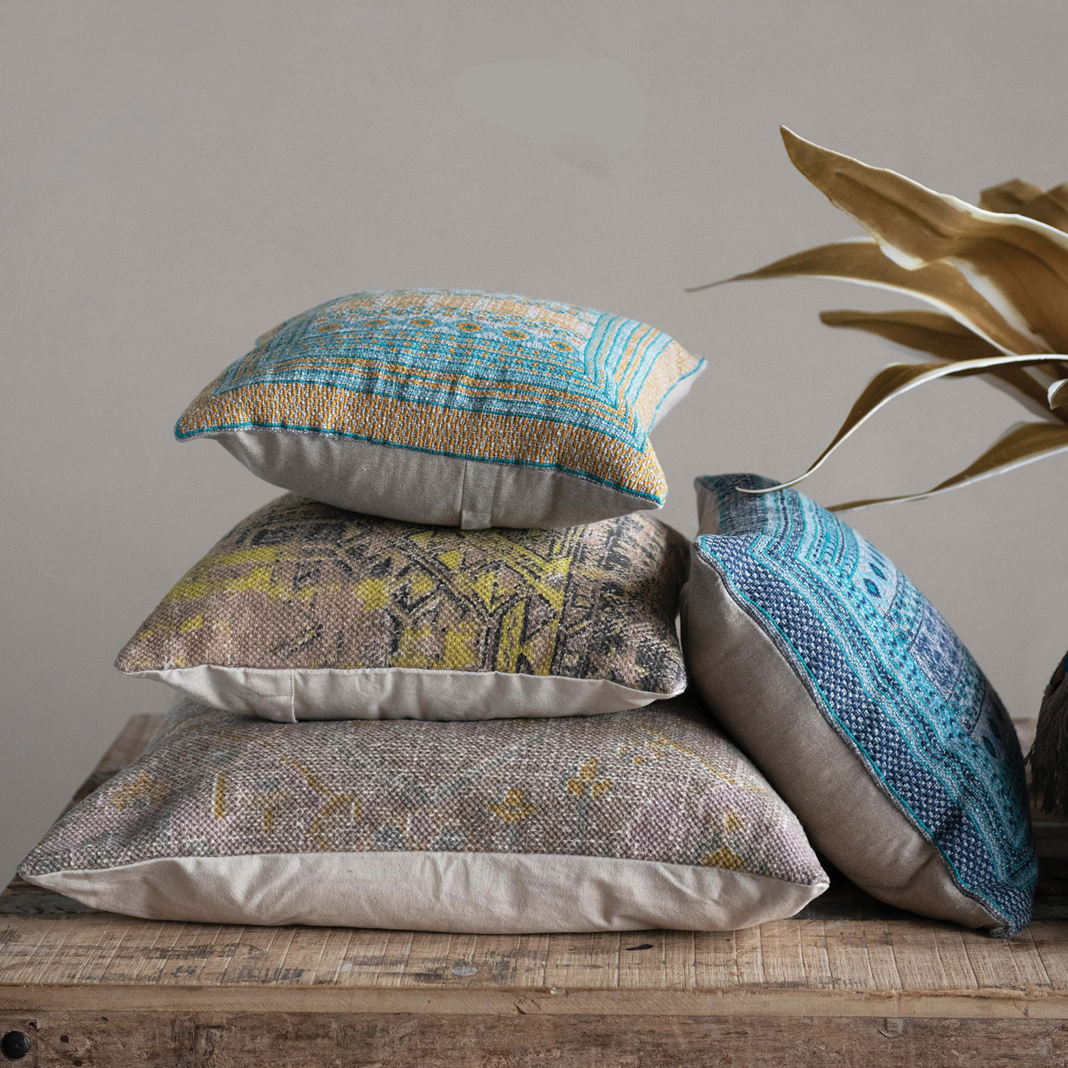 Catalog Name: 18" Square Stonewashed Cotton Printed Pillow, Multi Color