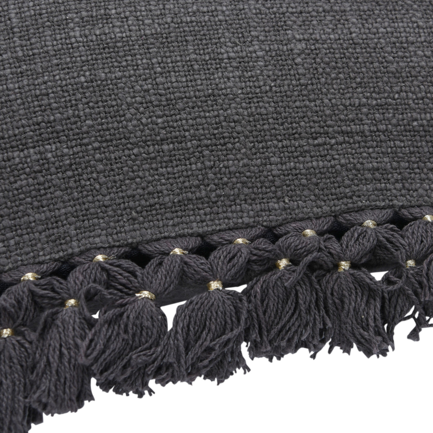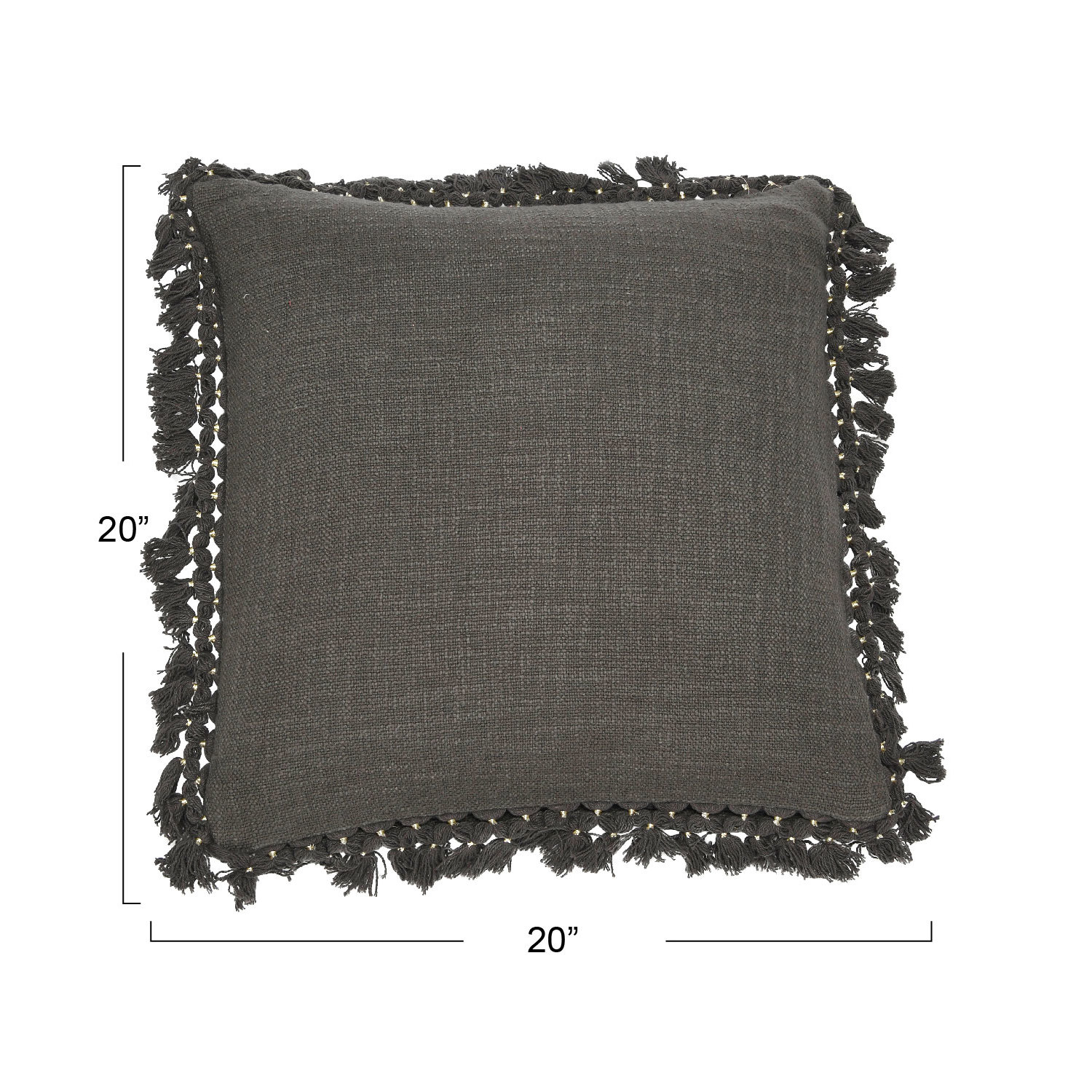 Catalog Name: 20" Square Cotton Slub Pillow w/ Gold Thread Wrapped Tassels, Charcoal Color