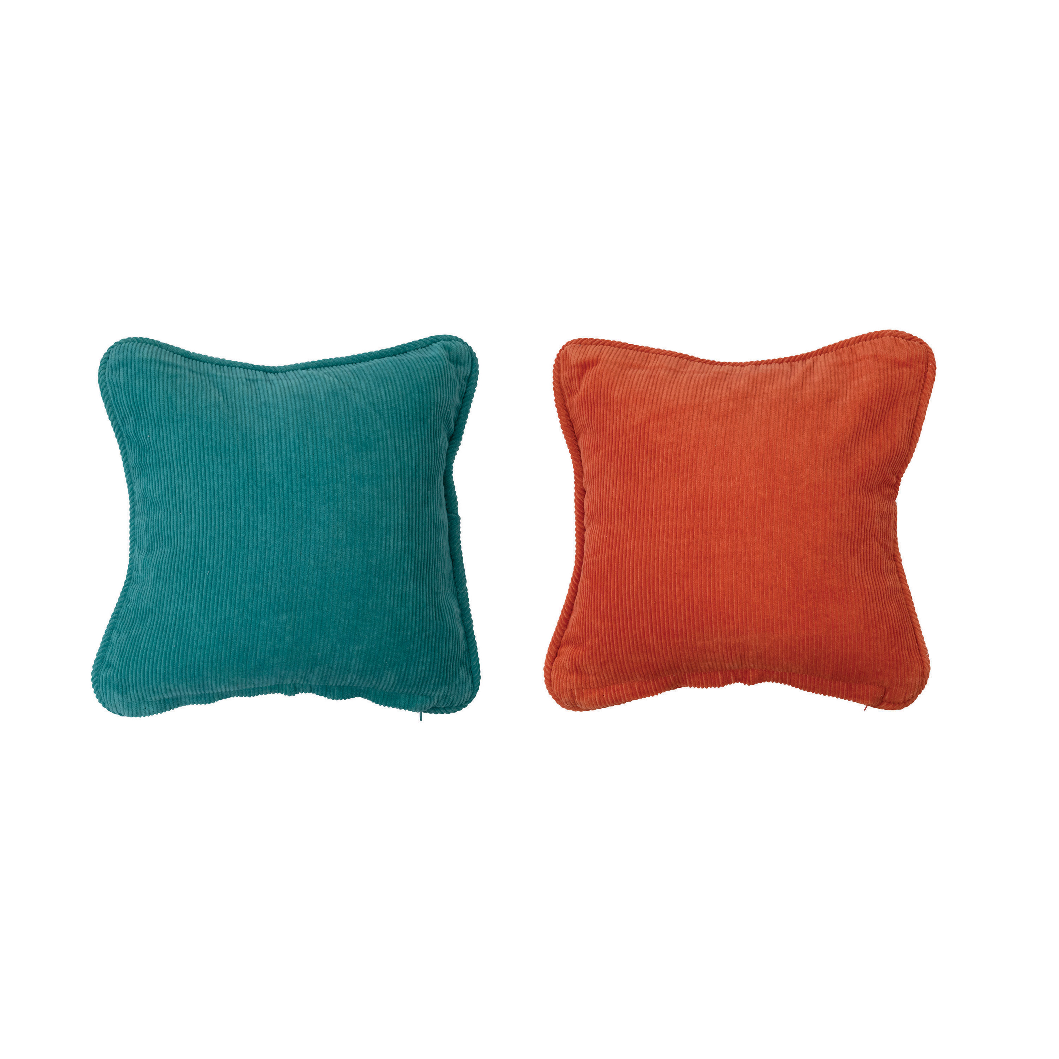 Catalog Name: 12" Square Cotton Pillow w/ Saying, Cord Piping & Corduroy Back, 2 Styles ©