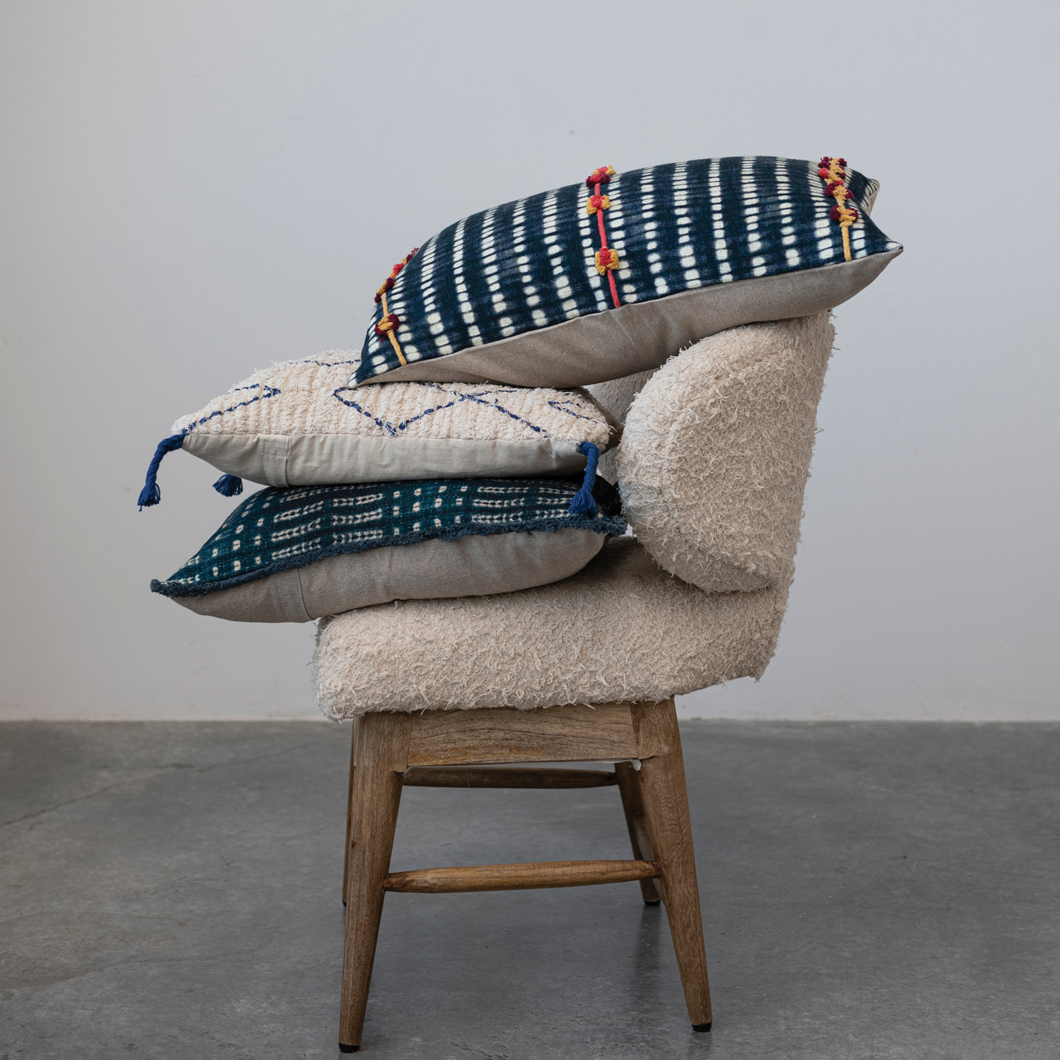Our thoughtfully curated collection of throw pillows showcases a wide array of lush woven textures, prints, embroidery, and silhouettes to create the picture-perfect nook. Explore a variety of plush accents to transform a house into a home including throw pillows, lumbar pillows, bolster pillows, down and polyfill inserts, and so much more. Choose from a vast array of materials from supple velvet and handwoven cotton to embroidered wool and textural boucle, and styles from mid-century modern and classic farmhouse to contemporary boho and vintage glam. Add a dash of relaxation and sophistication to a lounge space or bedroom to curate a warm and welcoming ambiance that is guaranteed to impress. This Scandinavian inspired throw pillow showcases soft tufted cotton with a minimal geometric design and decorative braided tassels. Includes polyfill insert. Machine Wash Warm with Mesh Bag Gentle Cycle, Do Not Bleach, Tumble Dry Low, Warm Iron If Needed or Hand Wash. Made from cotton and down feathers.