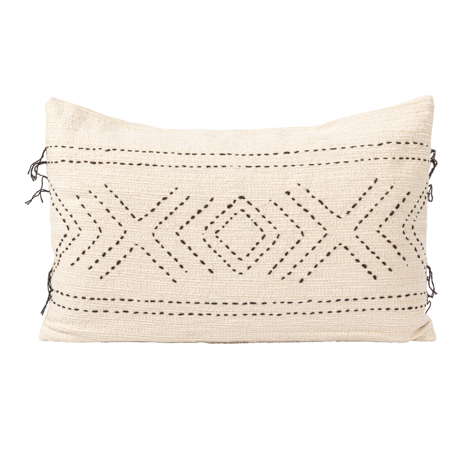 Catalog Name: 24"L x 16"H Cotton Lumbar Pillow w/ Hand-Embroidered Kantha Stitch, Natural & Black