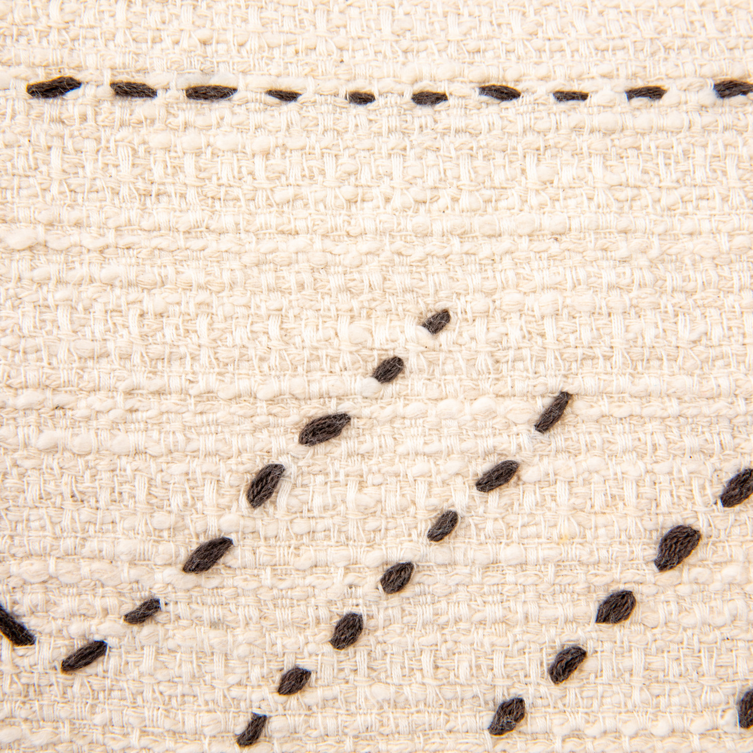 The 24-inch Hand-Embroidered Cotton Lumbar Pillow features Kantha stitching in natural and black tones, giving it a classic and elegant appeal. Made from high-quality cotton for a soft and comfortable feel, with hand-embroidered details that showcase craftsmanship and attention to detail. This lumbar pillow combines style and support with its plush polyester filler and attractive design. This product is made of cotton with polyester filler. This pillow measures 24 inches in length and 16 inches in width. The 24-inch Hand-Embroidered Cotton Lumbar Pillow features Kantha stitching in natural and black tones, giving it a classic and elegant appeal. Made from high-quality cotton for a soft and comfortable feel, with hand-embroidered details that showcase craftsmanship and attention to detail. This lumbar pillow combines style and support with its plush polyester filler and attractive design. This product is made of cotton with polyester filler.