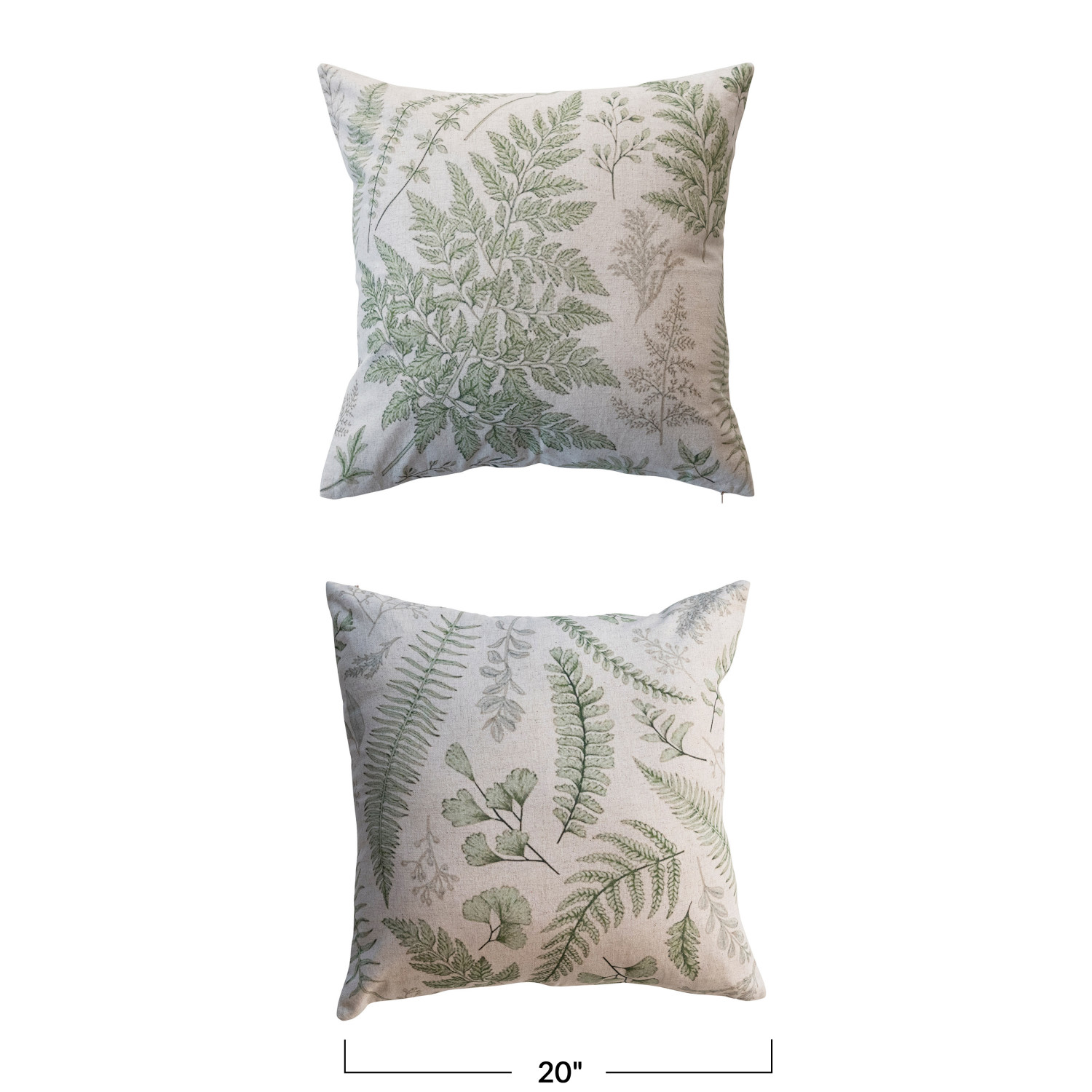 Catalog Name: 20" Square Cotton & Linen Printed Pillow w/ Botanicals, Natural & Green, 2 Styles