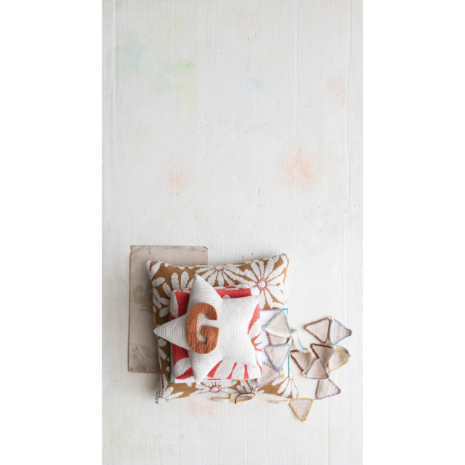 Catalog Name: 14"L x 14"W Recycled Cotton Crocheted Star Shaped Pillow, Cream Color