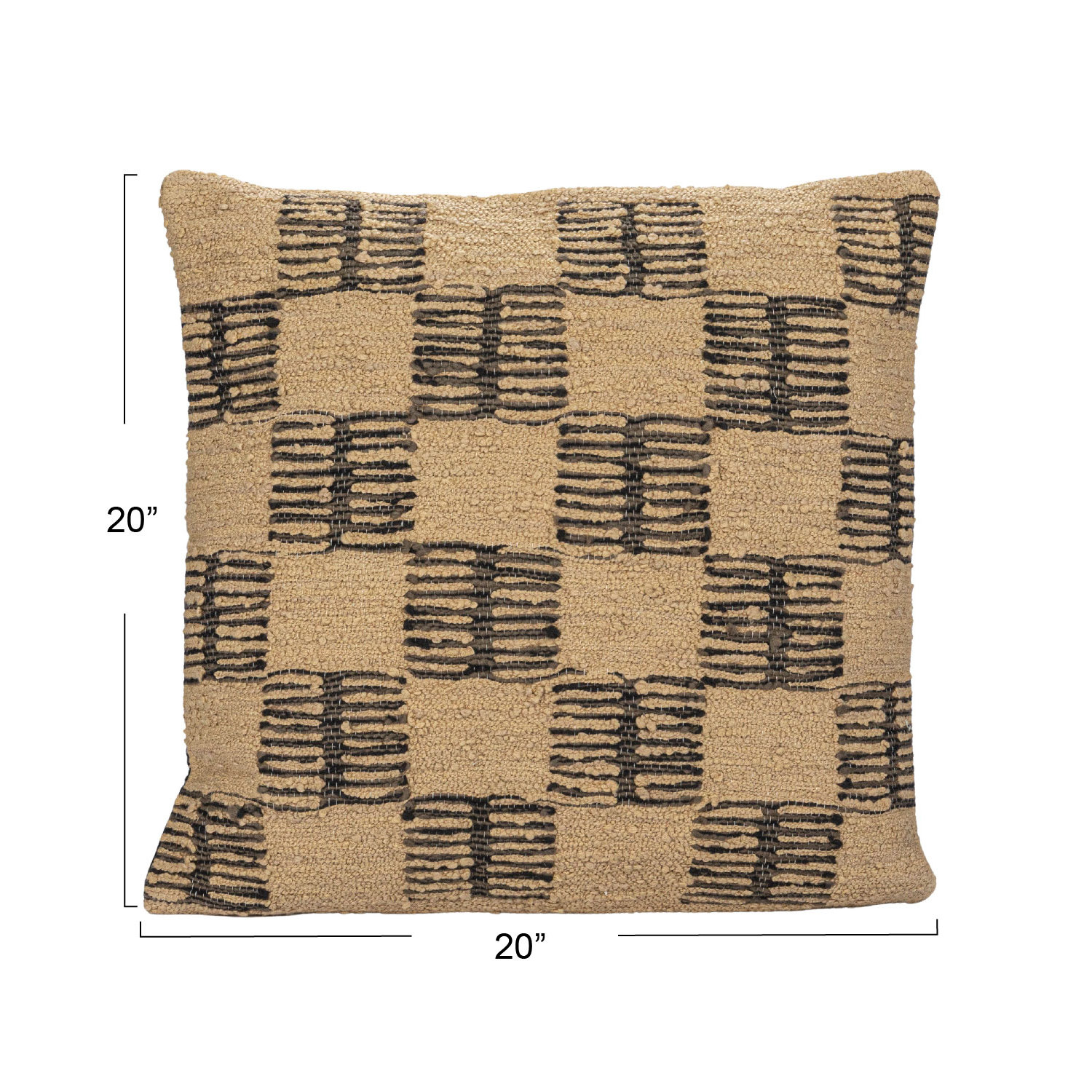 20" Square Woven Fabric Indoor/Outdoor Pillow w/ Block Pattern