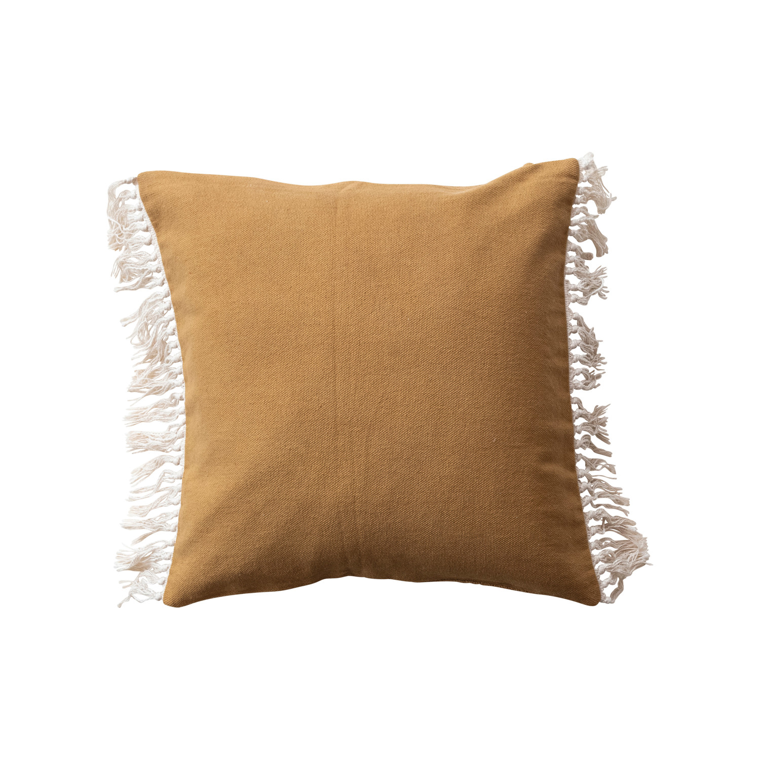 Catalog Name: 20" Square Cotton Pillow w/ Fringe, Mustard Color & Natural