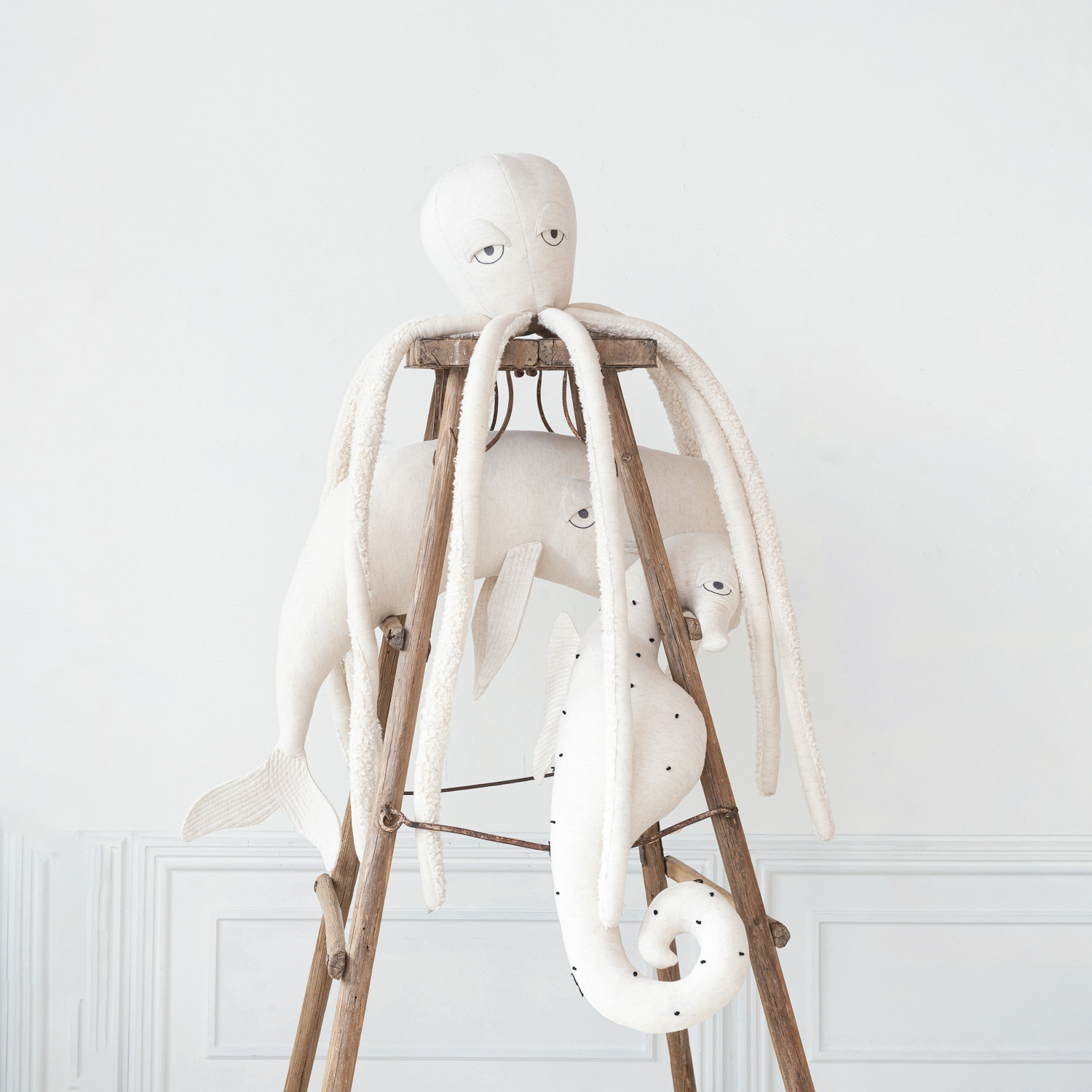 This Cotton and Linen Whale Shaped Pillow is a gentle giant of home decor. At 48 inches long and 12 inches high, it's designed to make a splash in any room. The crisp white cotton and linen materials evoke a sense of oceanic purity, while the whale's form brings a playful yet sophisticated element to the living space. It's a versatile piece that fits effortlessly into various design aesthetics, providing both visual interest and comfort. Whether placed on a couch, bed, or accent chair, this pillow is sure to be a conversation starter. Its whimsical design adds a touch of charm and personality to the home decor.