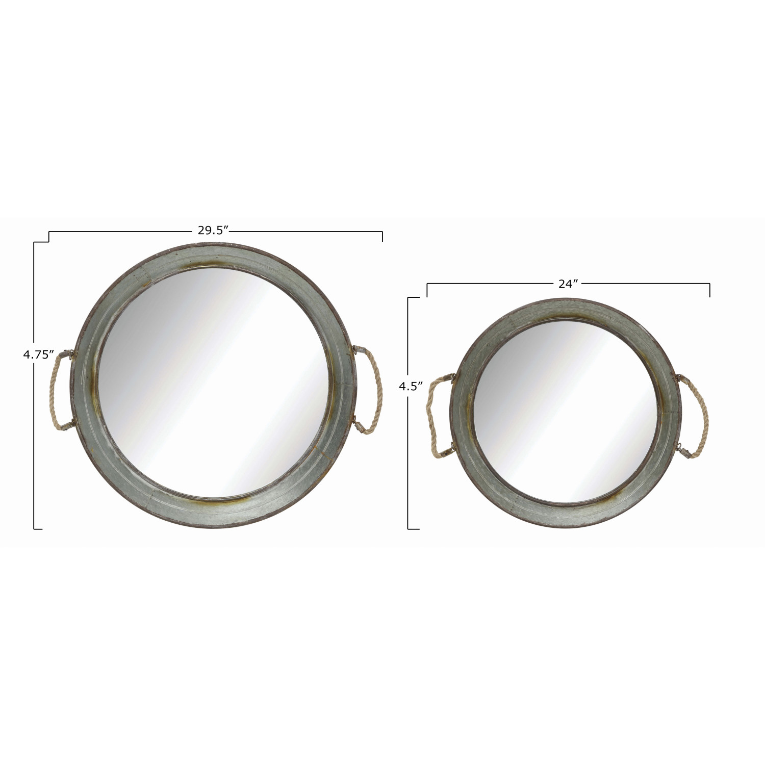 Catalog Name: 30" Round & 24" Round Metal Framed Wall Mirrors w/ Rope Handles, Set of 2, Truck Ship