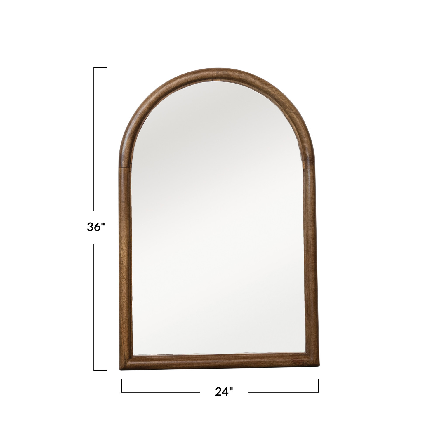 Catalog Name: 24"W x 36"H Arched Mango Wood Framed Wall Mirror, Natural, Truck Ship