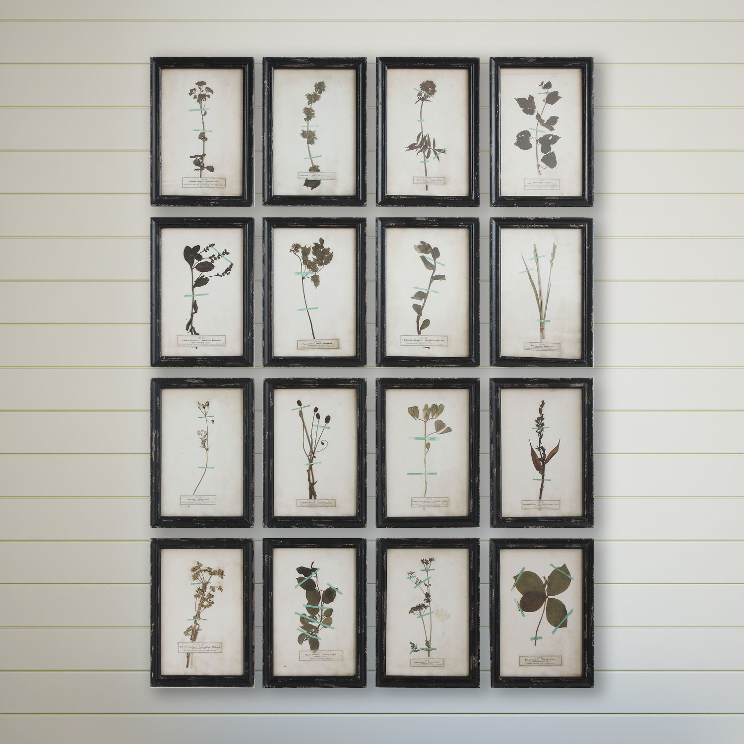 Instantly fill a blank wall with a botanical gallery. This set of wall plaques each features different types of dried flowers. They are each in a distressed black frame. Hang them together in a grouping or in different locations around your store.