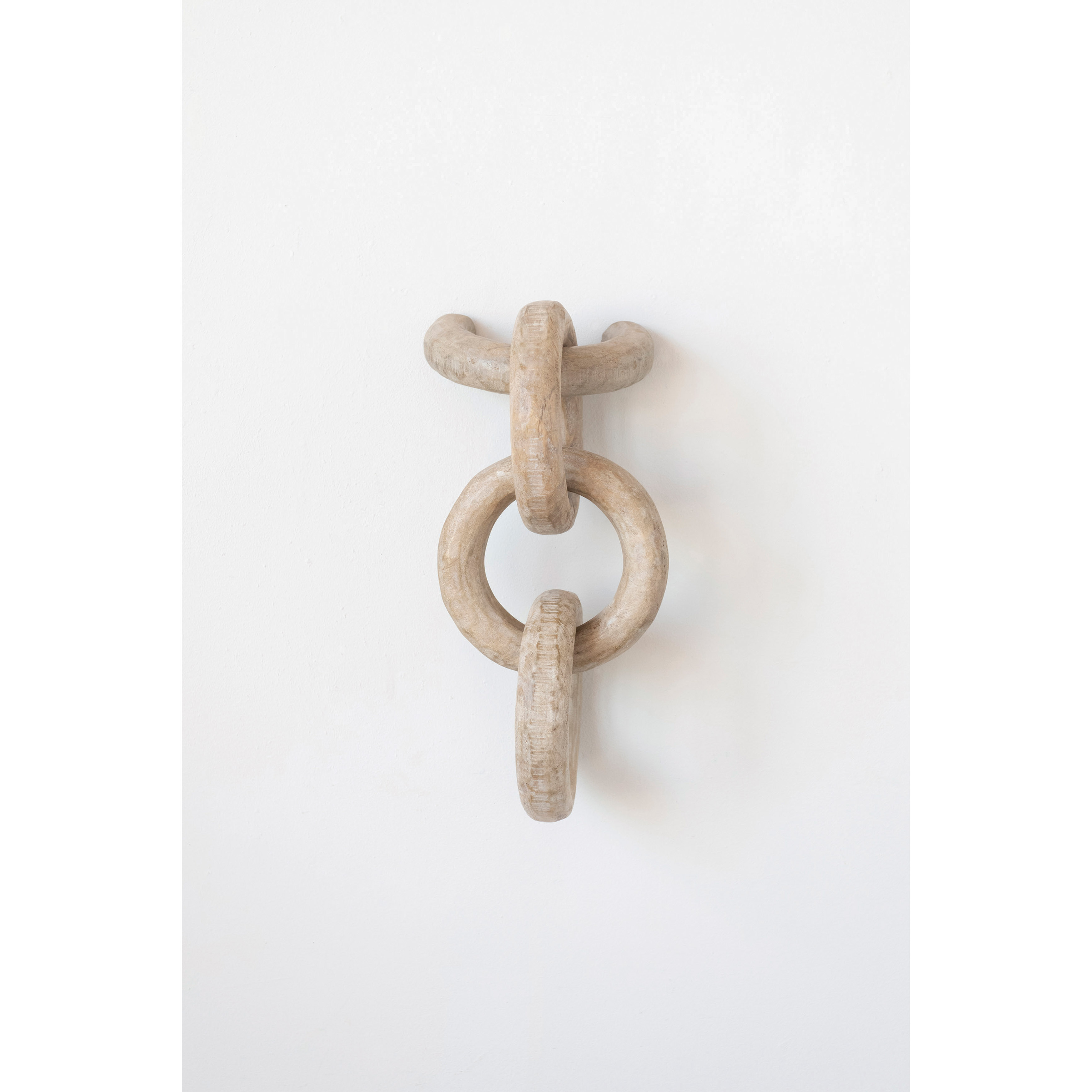 This playfully rustic wall chain showcases carved mango wood construction with 3 links. Mango wood wall chain with 3 links. Display this stunning wall decor to effortlessly enhance the design of any living space. Made from 100% mango wood.