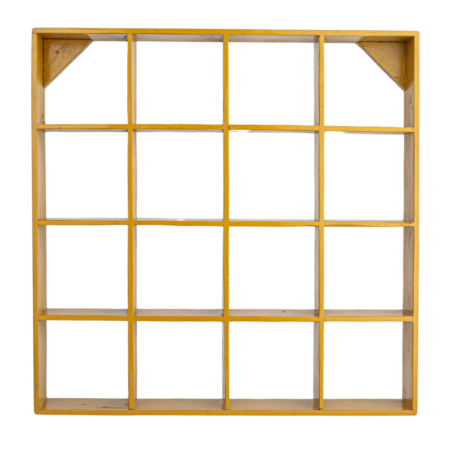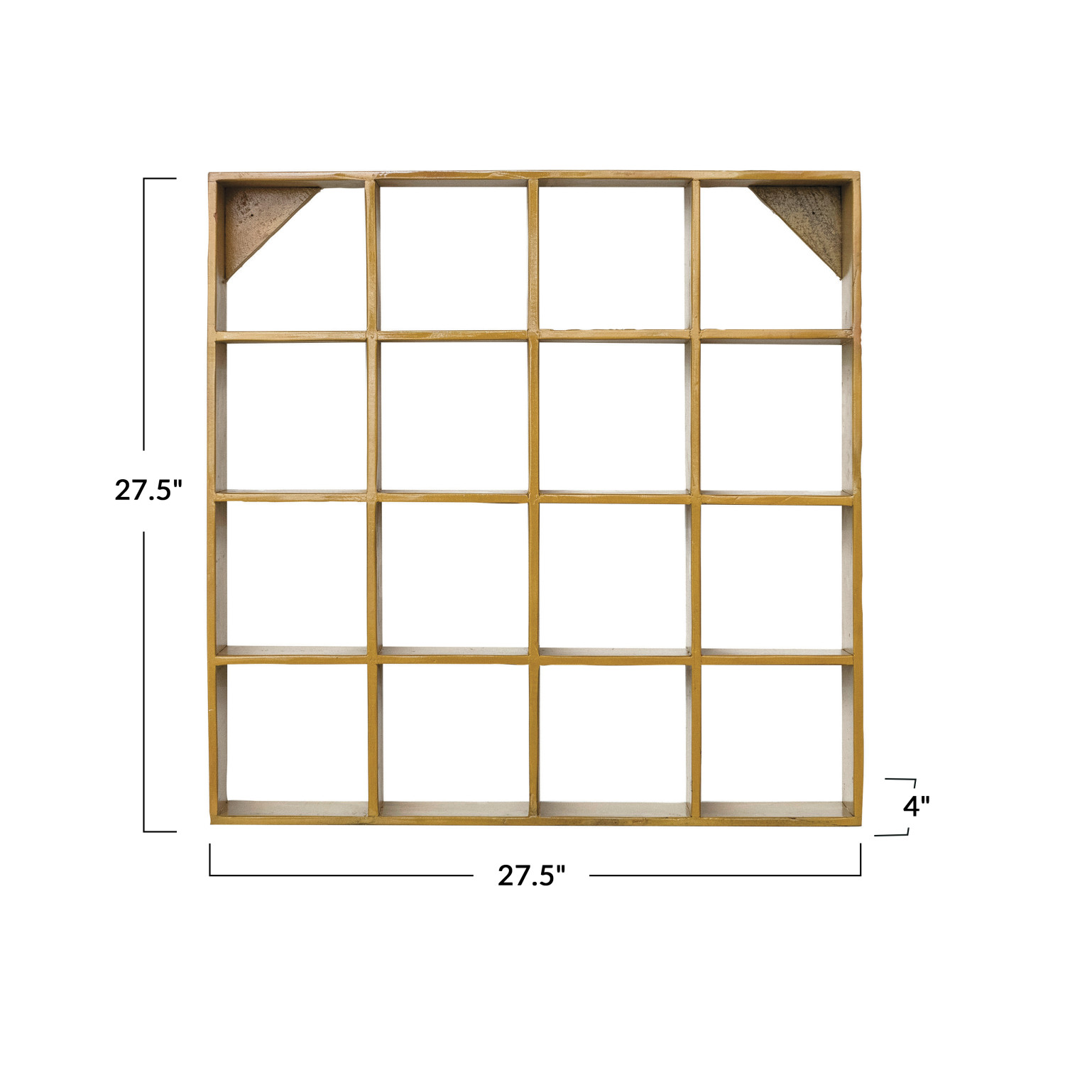 Catalog Name: 27-1/2" Square x 4"D Reclaimed Wood Wall Shelf w/ 16 Sections, Gloss Finish, Mustard Color (Hangs or Sits) (Each One Will Vary)