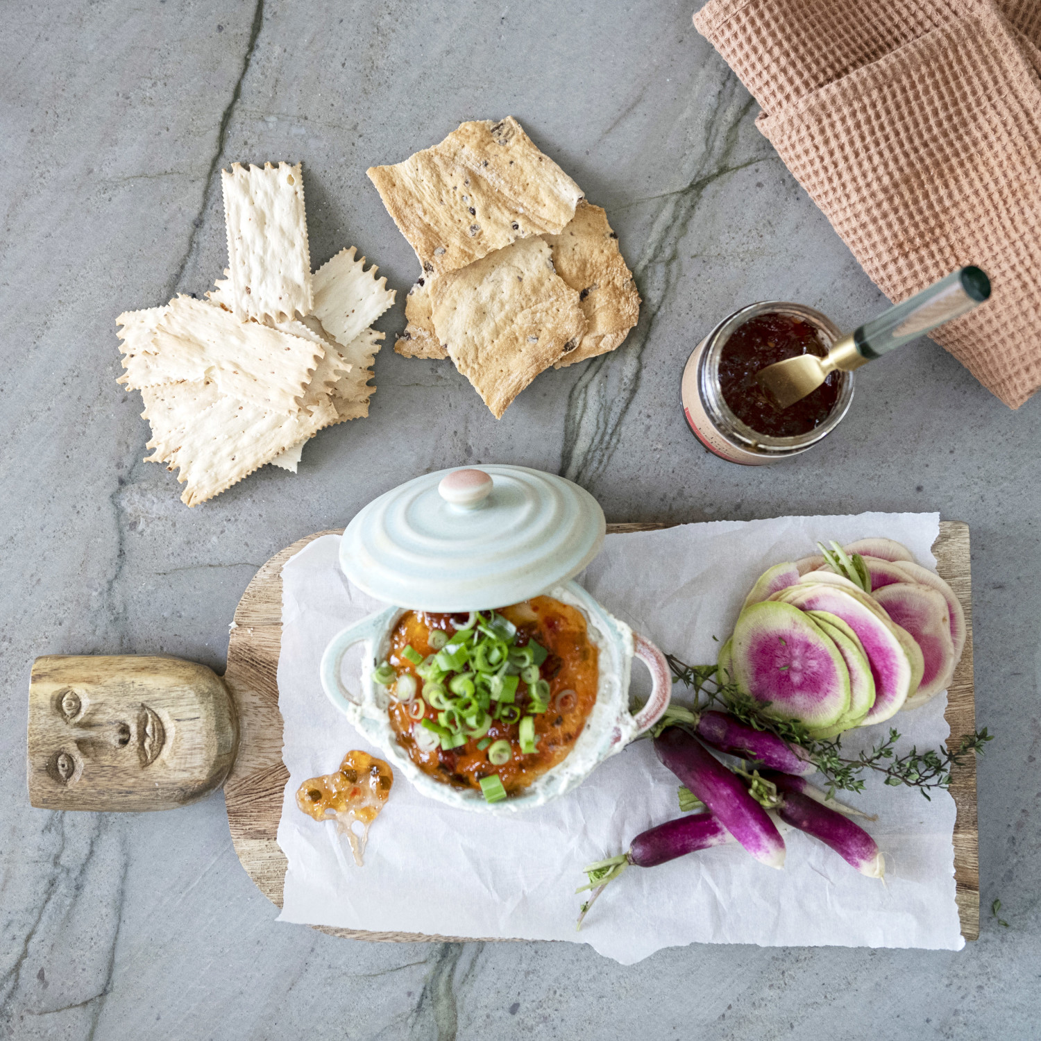 Beautiful in color and sweet with heat! Our Hot Pepper Jelly pairs perfectly with crackers and cream cheese or spread on a biscuit. Hot Pepper Jelly is always a hit, no matter how you serve it. Click here for recipes + product uses!